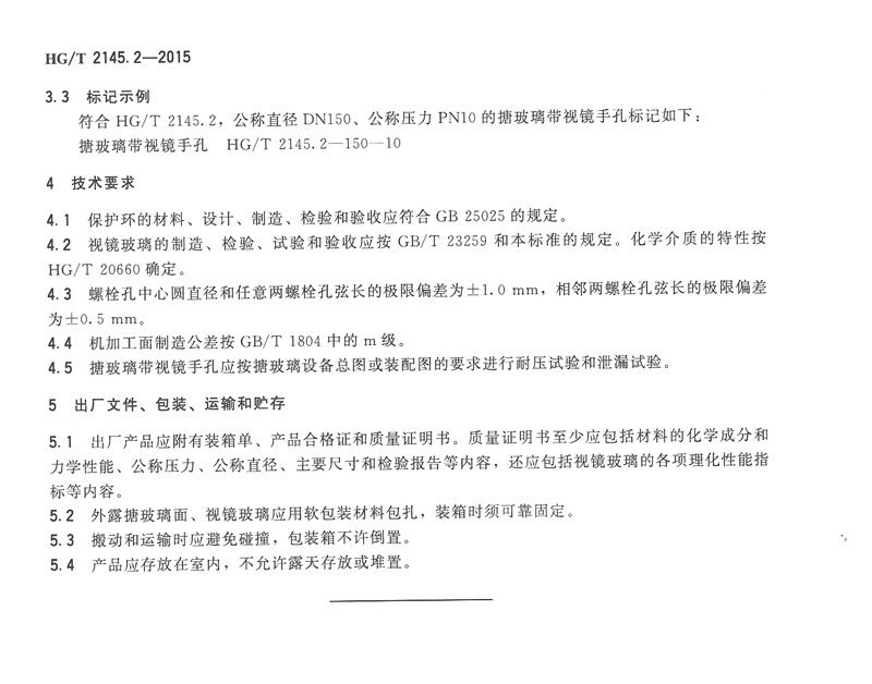中華人民共和國(guó)化工行業(yè)標(biāo)準(zhǔn)HG/T 2145.2-2015搪玻璃帶視鏡手孔 點(diǎn)擊下載搪玻璃帶視鏡手孔行業(yè)標(biāo)準(zhǔn)
