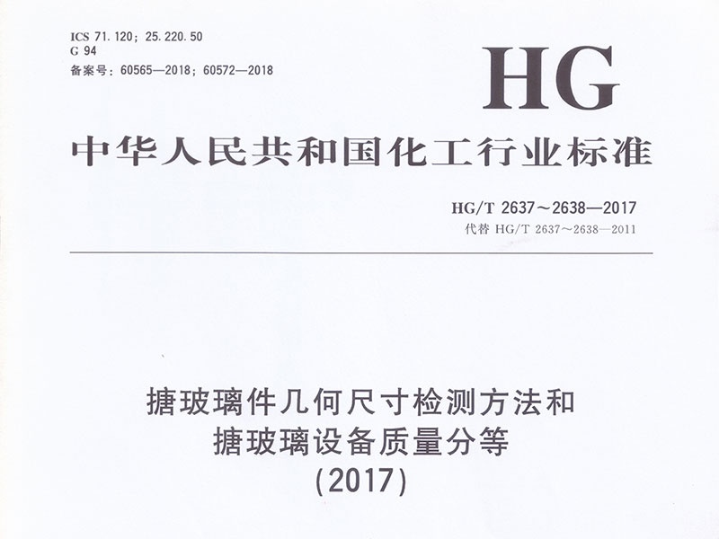 無錫錢橋化工機(jī)械有限公司參與起草中華人民共和國(guó)化工行業(yè)標(biāo)準(zhǔn)HG/T 2637~2638-2017《搪玻璃件幾何尺寸檢測(cè)方法和搪玻璃設(shè)備質(zhì)量分等》。 ...