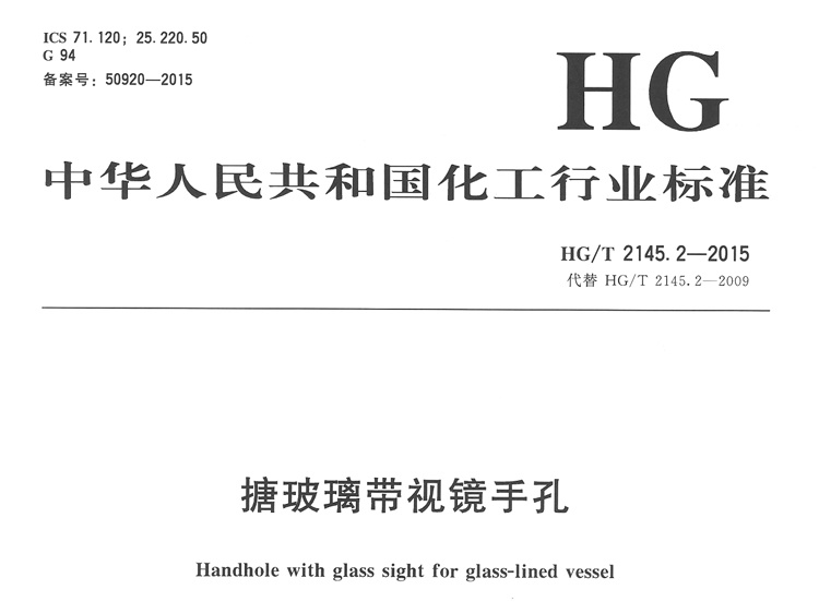 中華人民共和國(guó)化工行業(yè)標(biāo)準(zhǔn)之HG/T 2145.2-2015搪玻璃帶視鏡手孔,無錫市錢橋化工機(jī)械有限公司為本標(biāo)準(zhǔn)起草單位之一。 ... ...