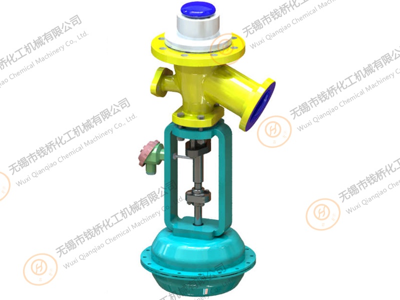Bottom outlet valve (65°) gap free with pneumatic actuator.搪玻璃上展式自動放料閥 *內(nèi)置測溫氣動放料閥Can not be used for liquids containing fluoride ions (such as hydrofluoric acid, etc.), nor can it be used for strong alkalis and concentrated phosphoric acid with a temperat